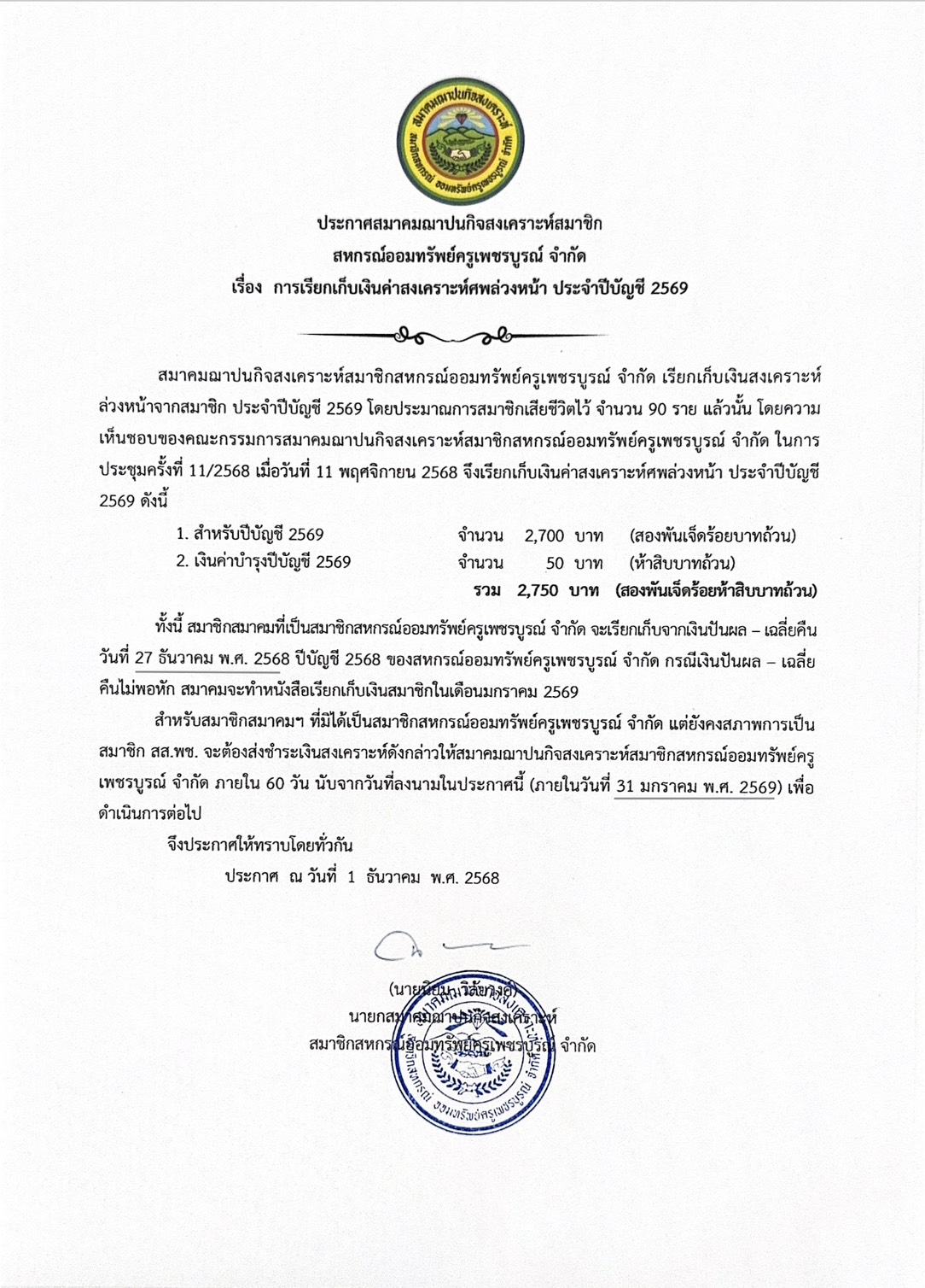 ประกาศ เปิดรับสมัครสมาชิกเป็นกรณีพิเศษเนื่องในวันมหามงคลครบ 6 รอบ(72 พรรษา) พระบาทสมเด็จพระเจ้าอยู่หัวรัชการที่ 10 (เพิ่มเติม) 12 พฤศจิกายน 2567 เป็นต้นไป
